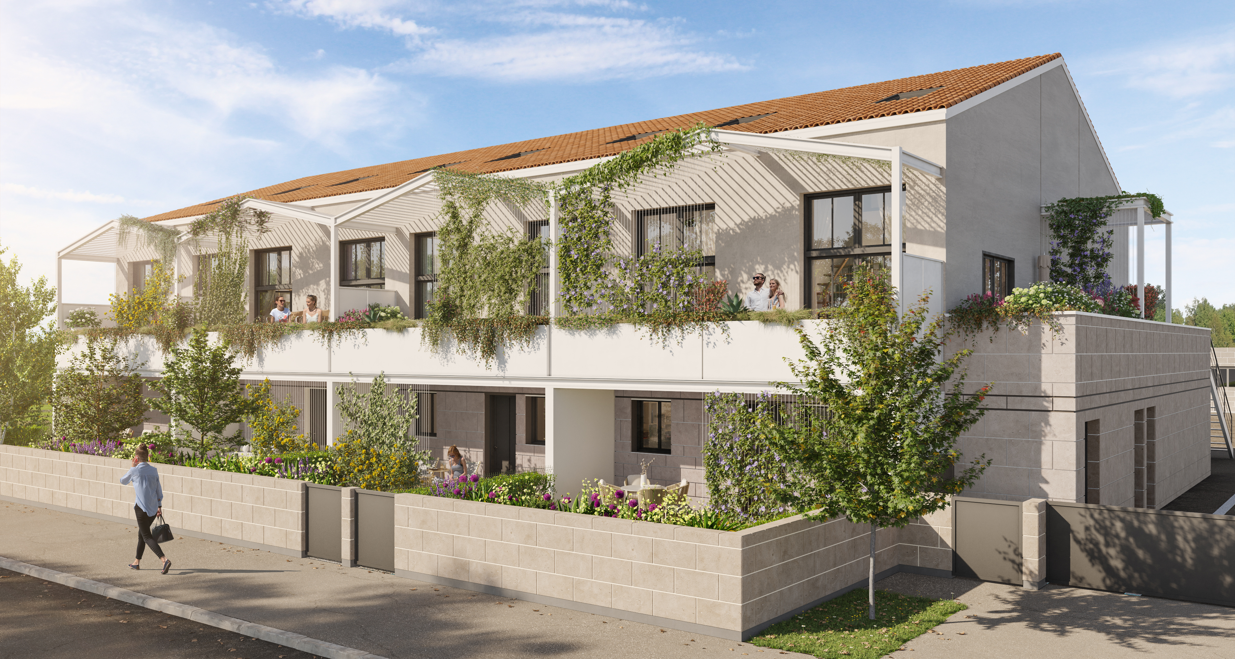 TALENCE, PRIX D’EXCELLENCE… Aux portes de Bordeaux, Talence compte parmi les communes prisées de la Métropole. Son cadre de vie paisible s’agrémente de multiples espaces naturels, dont le bois de Thouars de 60 hectares, des parcs et vignes en son cœur. Ville universitaire avec l’un des plus vastes campus d’Europe et de grandes écoles, Talence dispose aussi d’infrastructures sportives, scolaires et culturelles de premier plan propices à une vie citadine harmonieuse. Parfaitement connectée, elle bénéficie de l’ensemble des solutions de transport de Bordeaux Métropole. Loin de la densité et de l’agitation urbaine, cette nouvelle résidence profite de la sérénité d’un quartier résidentiel et arboré. Cette adresse est également celle de la proximité : commerces, services, écoles, supermarchés, bus… tout reste accessible à moins de 10 minutes à pied. TEL UN SECRET BIEN GARDÉ Composé de seulement 12 appartements et 5 maisons, le tout forme un ensemble confidentiel discrètement intégré à son environnement. Sobres et lumineuses, les façades alternent parements de pierre et enduits clairs. Des toitures en tuiles canal traditionnelles ou bac acier plus contemporain les couronnent avec élégance. De subtils détails soulignent cette architecture intemporelle : des marquises abritant les entrées, des auvents ou pergolas en surplomb des terrasses, les menuiseries, volets roulants et portes d’entrée en aluminium… Cette résidence dévoile aussi un traitement paysager délicat tel un cocon verdoyant qui se prolonge jusque sur les bâtiments à la faveur de plantes grimpantes le long de câbles disposés à cet effet. - À 10 minutes à pied de la station Peixoto - Tram B (centre de Bordeaux en 15 minutes). - À 17 minutes en voiture de l’aéroport de Bordeaux-Mérignac. - À 13 min en voiture de la gare TGV/LGV de Bordeaux-Saint-Jean. - À 17 minutes en voiture du cœur de Bordeaux (place Gambetta). DES BIENS D’UNE QUALITÉ RARE ! De 3 pièces duplex à 5 pièces, ces logements combleront les familles et les amoureux des grands volumes. Tous les intérieurs se démarquent par une luminosité exceptionnelle grâce aux dispositions traversantes, voire aux triples orientations. Des plans idéalement conçus, de nombreux rangements pour libérer l’espace, de généreux extérieurs, des suites parentales avec salle d’eau attenante… tout participe à un confort résidentiel hors du commun et chaque typologie réserve de belles surprises ! DES APPARTEMENTS AUX AIRS DE MAISONS Au rez-de-chaussée, les appartements traversants de 4 pièces disposent de 2 jardins avec terrasses, de part et d’autre, et d’un accès individualisé depuis l’extérieur. La cuisine ouverte sur le séjour tire profit d’une implantation en alcôve qui renforce la sensation d’espace. Les 3 pièces en duplex proposent au premier étage une belle pièce de vie avec une partie en double hauteur habillée de larges baies vitrées. Cet espace se prolonge d’une ou deux terrasses, abritées d’une pergola et bordées d’une grande jardinière. Le coin nuit s’invite sous les combles dans une atmosphère cosy et intimiste à laquelle les fenêtres de toit apportent un cachet supplémentaire. DES MAISONS QUI RIMENT AVEC INDÉPENDANCE ET INTIMITÉ De plain-pied, les maisons de 4 et 5 pièces révèlent des volumes remarquables et des agencements qui préservent l’intimité et les rythmes de chacun. La pièce à vivre donne sur une terrasse protégée d’un auvent vers un grand jardin à l’abri des regards. Pour la plupart, ces grands terrains engazonnés bordent tout le pourtour des villas. Le stationnement aérien se situe à proximité des logements, avec certaines places équipées pour les véhicules électriques, et les 3 locaux vélos offrent un usage pratique au quotidien. LE LABEL NF HABITAT, C’EST QUOI ? Un engagement et un contrôle du promoteur par un organisme tiers et indépendant : L’attestation NF Habitat remise lors de la livraison de votre appartement confirme que celui-ci est conforme aux exigences de la certification NF Habitat Des logements évalués et construits sur des exigences multicritères : Acoustique : Renforcement de l’isolation acoustique au bruit de choc. Économie d’énergie : Le logement est performant et les systèmes de ventilation sont vérifiés pour apporter un confort thermique. Sécurité et sureté : Pour vous et vos proches, le logement est conçu pour favoriser la qualité de l’air et limiter les risques d’intrusion. Conception fonctionnelle : Plan de cuisine, branchement des équipements, vanne d’arrêt en eau du logement. NF Habitat, c’est aussi une qualité de services et d’information apportés tout au long de votre projet : Des informations sur les dates de livraison de votre logement, l’organisation d’une visite au moment de la pose des cloisons, remise d’un livret du propriétaire qui précise le fonctionnement des équipements.