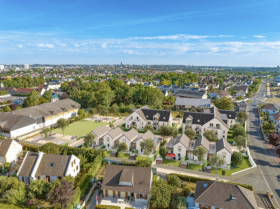 « Le Domaine du Clos Boisé » bénéficie d’un emplacement d’exception, clos de murs eten limite d’un espace boisé protégé. Cetteopération immobilière offrira à ses résidents uncadre de vie privilégié très proche de Caen, touten conservant son « esprit village ». Ce futur lieude vie se révèle être une véritable invitation àla promenade, puisqu’il est bordé d’une sentepiétonne qui permet notamment de rejoindreles parcs paysager de « L’Orée du Bois » et duchemin de Joré.Idéalement située à proximité du centre-ville,des services et des commerces, la résidenceest composée de 38 appartements allant du T2au T3 et de 7 maisons groupées de type T4 avecchambre en RDC.Construite aux normes RT 2012, cette résidencebénéficie d’une isolation thermique et acoustiquerenforcée, d’un chauffage et d’une productiond’eau chaude individualisés, ceci garantit àses occupants une maîtrise de leur budgeténergétique. Afin de profiter pleinement del’extérieur, l’ensemble de logements dispose d’unbalcon, d’une terrasse ou d’un jardin privatif.