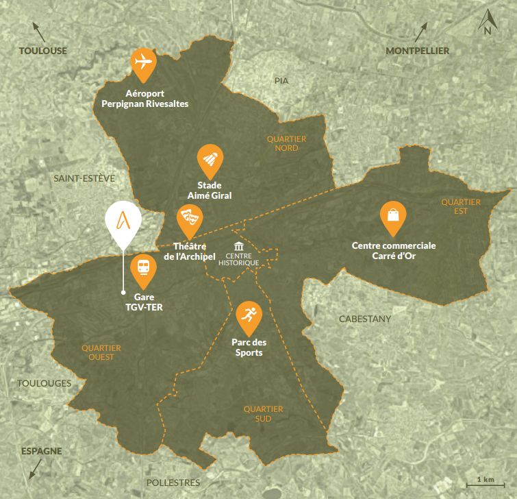 Perpignan se caractérise par sa proximité avec l'Espagne et les Pyrénées. La ville attire par son climat méditerranéen, offrant un ensoleillement généreux tout au long de l'année. Elle est réputée pour son patrimoine culturel riche avec le Palais des Rois de Majorque et son centre historique. Sur le plan économique, Perpignan bénéficie d'une agriculture florissante, grâce à la production de fruits et de vins, et elle est également très présente dans le secteur touristique et tertiaire. La ville est bien desservie en terme de transports, avec une gare TGV qui la relie à Paris et à Barcelone, et elle dispose d'un réseau de bus urbains.