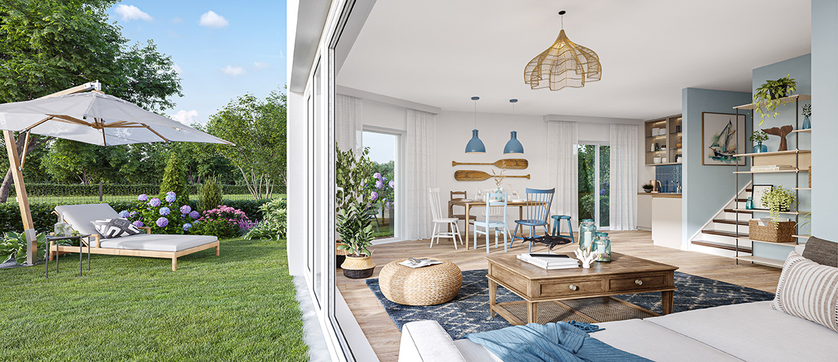 Découvrez en Avant-Première « Les Cottages du Chemin Vert » : nouvelle résidence intimiste d'exception à Cabourg ! Profitez d'une situation privilégiée au coeur de la très chic et célèbre station balnéaire de la Côte Fleurie proche de Deauville, à 5 MIN DE LA PLAGE ! BIRDY Promotion vous propose 15 superbes cottages de grand standing déclinés du 3 pièces au 5 pièces +, déployés autour d'un joli coeur d'îlot paysager arboré et fleuri. Afin de prolonger l'harmonie et le confort de tous, chaque cottage possède son propre jardin clos, au calme, accessible depuis le séjour. L'architecture élégante inspirée du charme typique des maisons normandes traditionnelles à colombages, est enrichie par les innovations architecturales et environnementales contemporaines : espaces de vie généreux, baignés de lumière naturelle, logements connectés. La résidence « Les Cottages du Chemin Vert » profite de prestations de grand standing, d'accès sécurisés, de places de parkings, et d'un local pour les 2 roues. L'accent est mis sur les performances énergétiques et environnementales : choix des matériaux nobles pour un faible impact écologique, isolations renforcées, ventilation et lumière naturelle avec des logements multi-orientés pour des logements répondants au label RE2020. IDEAL POUR LES FAMILLES : les plages de sable fin, l'éventail des activités sportives : sports nautiques, équitation, golf, tennis, pêche, courses à l'hippodrome, le club enfant. IDEAL POUR TOUS : le Casino, la Thalasso, le Cinéma, le musée La Villa du Temps retrouvé, le port de plaisance de la Divette, le shopping dans le centre-ville avec ses commerces, les restaurants du centre-ville et le célèbre marché. Cabourg recèle de beaux espaces naturels, comme ses Dunes du Cap Cabourg à découvrir ou les Marais de la Dives. Tout est accessible en 5 min (à vélo ou à pied), dans une commune vivante et vibrante aux nombreux évènements et festivals qui réunissent résidents et touristes et animent la station au fil des saisons.