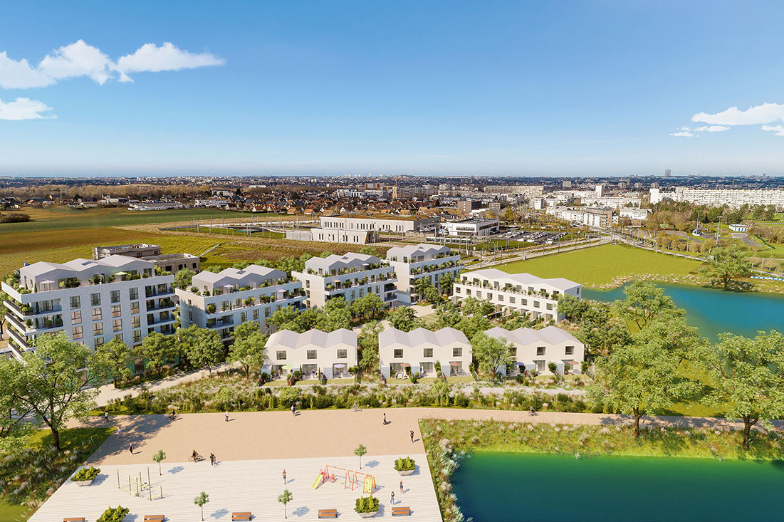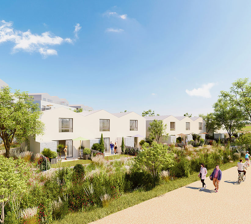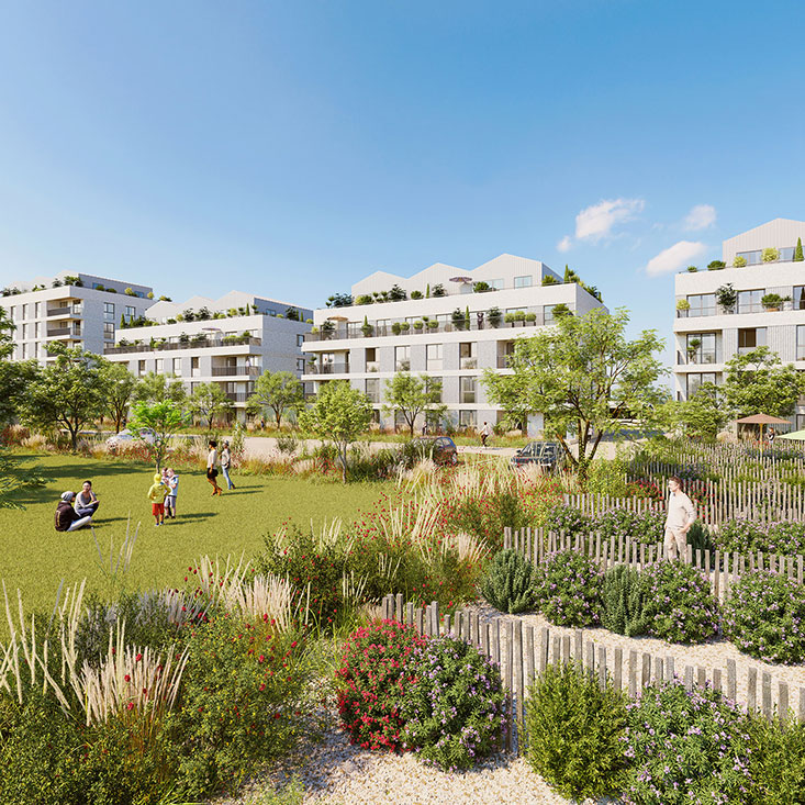 Le programme présente une offre de110 logements collectifs, répartis dans4 bâtiments, et 18 maisons individuelles accolées, avec de multiples vues dégagées sur le paysage et l’horizon.