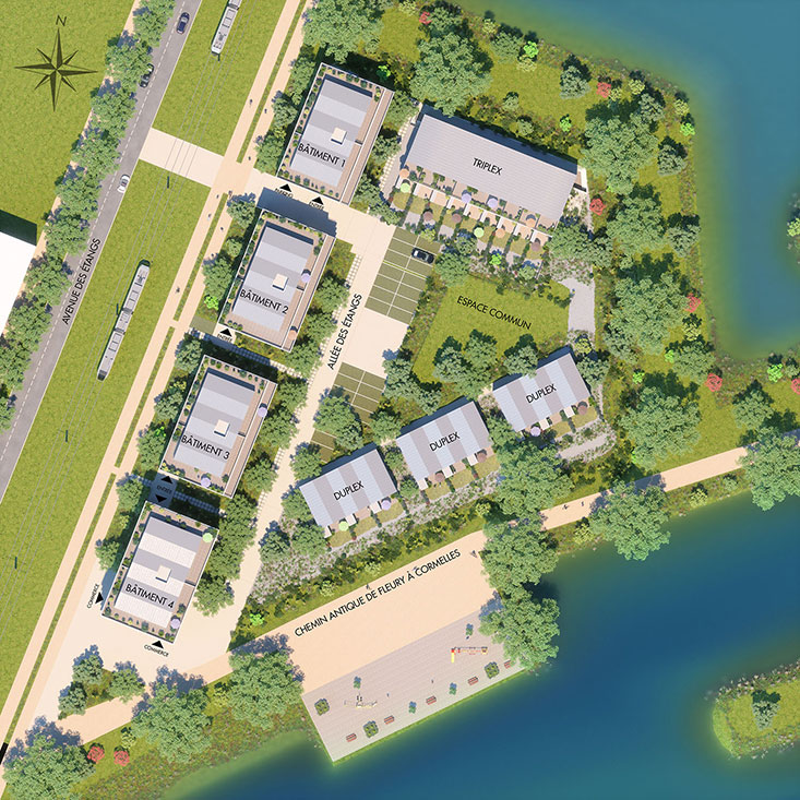 Les Terrasses de l'Etang se situe sur la commune de Fleury-sur-Orne, facile d'accès et qui offre surplace toutes les infrastructures : écoles,commerces, équipements sportifs et deloisirs…À deux pas de la Vallée de l’Orne et dela voie verte, sur un site naturel de plusde 7 000 ans d’histoire, le nouvel écoquartierdes Hauts de l’Orne, avec sesespaces naturels, ses étangs, sa placeet ses commerces, propose un lieu vieunique dans l’agglomération caennaise,desservi par le tramway.