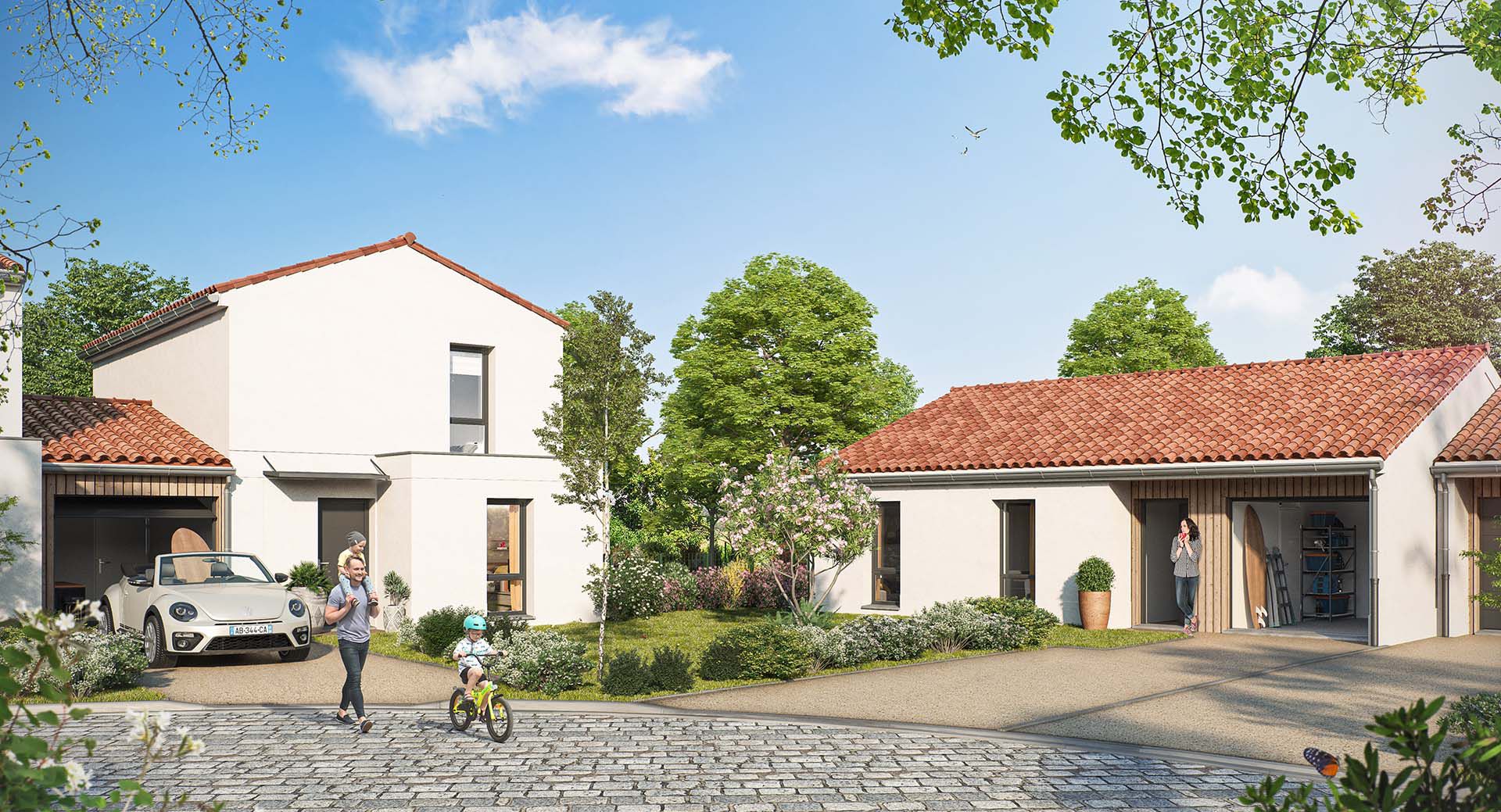Au cœur du littoral vendéen, ce lieu de vie intimiste est composé de 12 villas jardin, 6 appartements avec jardin ou balcon et 8 maisons individuelles de 4 ou 5 pièces prolongés de jardins engazonnés.