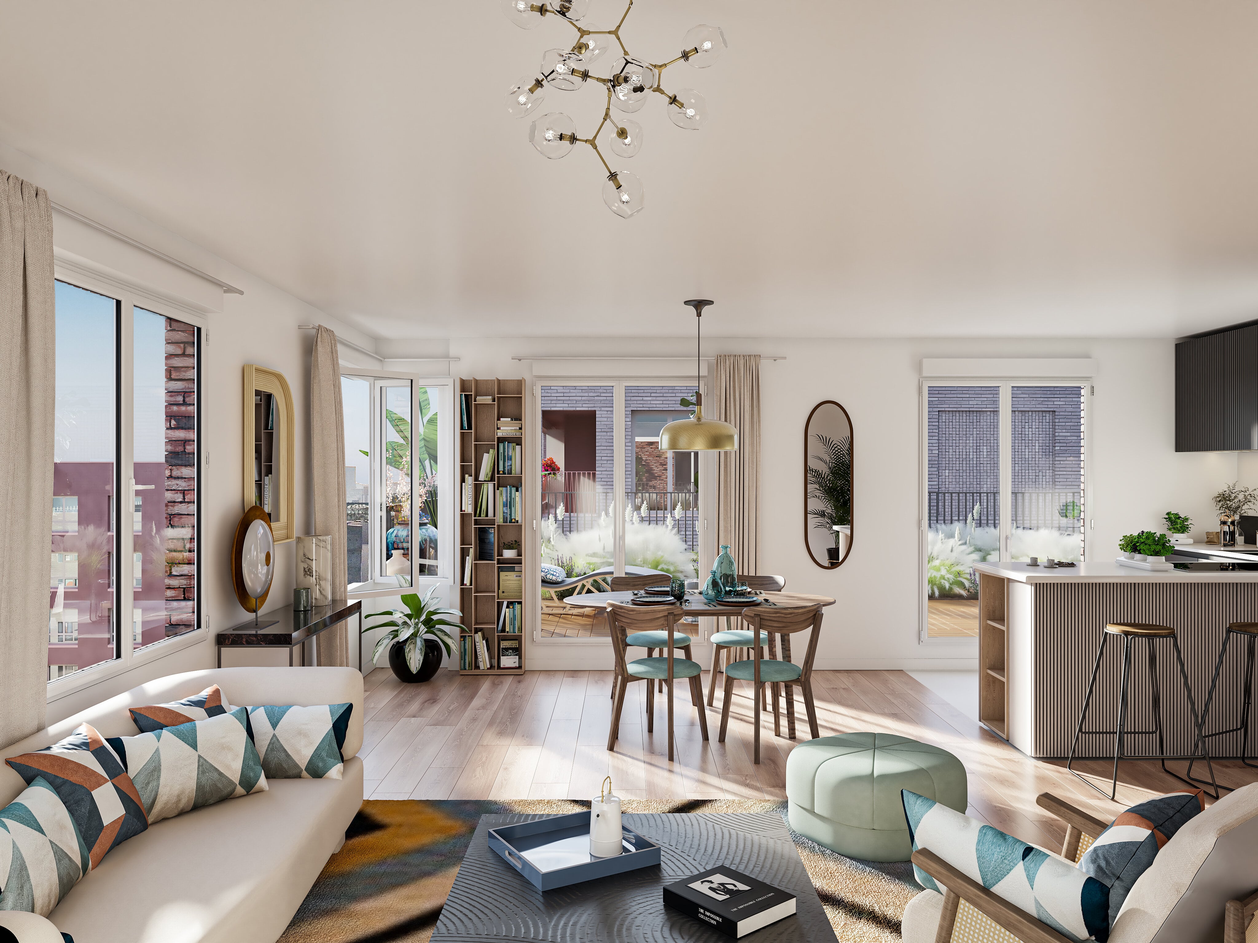 La résidence « Rue Pierre - Chapitre 3 » prend place à l’Ouest du quartier des Docks, à l’orée de Clichy et à proximité des rives de Seine, propices à de belles promenades.Prochainement ce lieu de vie associera aux logements et espaces verts de nombreux commerces et services ainsi que des bureaux. Déclinés du studio au 5 pièces, les appartements dévoilent de généreux volumes soulignés par une belle hauteur sous plafond de 2,60 m. Les pièces de vie et les chambres sont spacieuses et baignées de lumière naturelle, conciliant convivialité et intimité, jour après jour La résidence développe des extérieurs privatifs déclinés en balcons et terrasses pour l’ensemble des logements, afin de profiter pleinement de moments chaleureux en famille ou entre amis. En étage, certains apprécieront des terrasses plein ciel entourées de massifs végétaux et de haies. Certains appartements bénéficient de vues panoramiques dégagées sur le paysage urbain qui se dessine. TRANSPORTS : À 1 km de la ligne 14 du métro et du RER C Saint-Ouen À 19 min de la Porte de Clichy avec la ligne 14 À 30 min de Châtelet-les-Halles avec la ligne 14 À 26 min de la Porte Maillot avec le RER C À 15 min du parc Roger Salengro à Clichy,avec le bus 341 À 9 min en voiture de la Porte de Saint-Ouen À 10 min en voiture de la Porte de Clichy À 15 min de l’A86