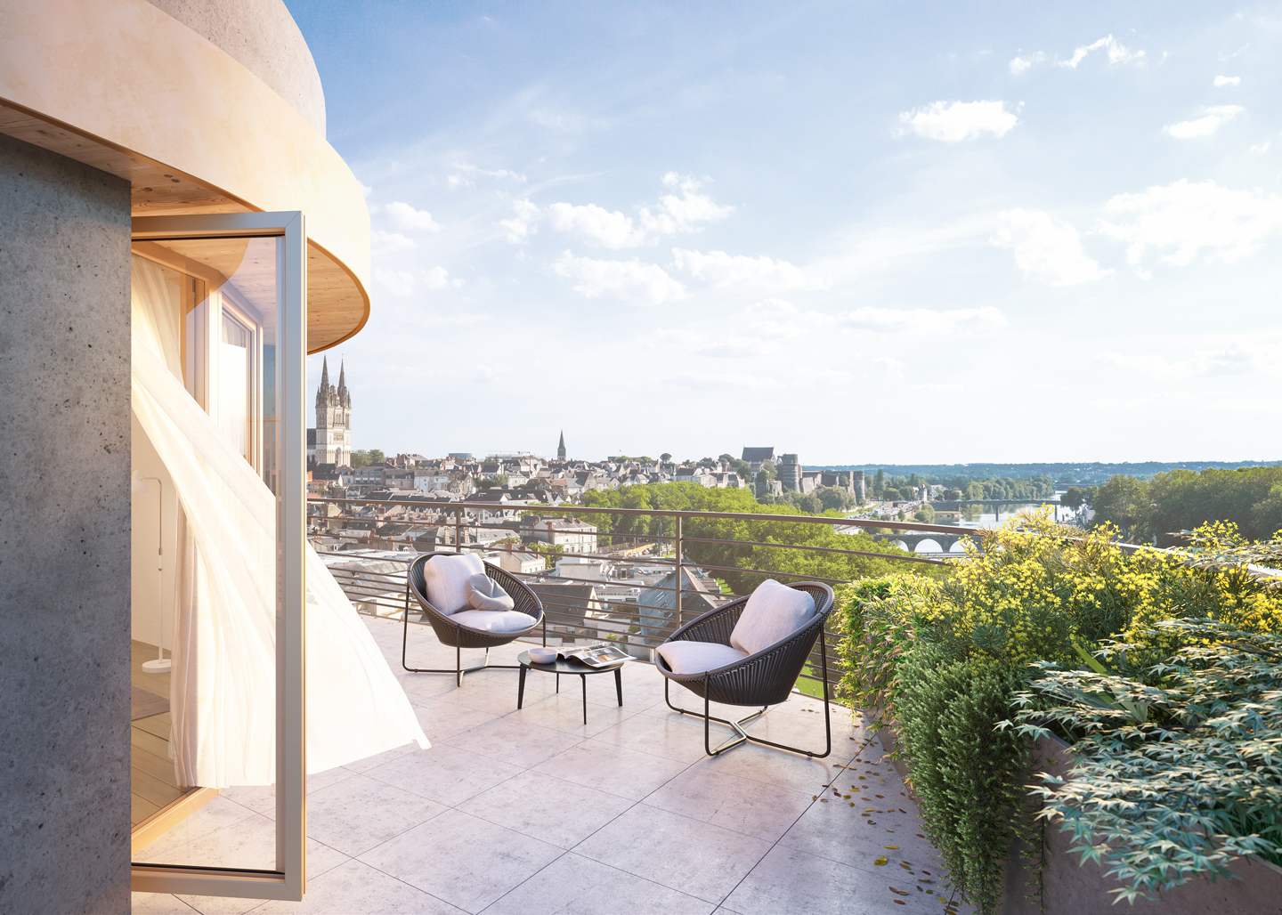 Situé au cœur d’Angers, en bord de Maine, ARBORESCENCE est un programme intergénérationnel qui rassemble une Résidence Séniors Services, un espace de co-working, une crèche et un roof-top. Son architecture moderne et audacieuse, son jardin partagé et ses vues imprenables sur la Maine et le centre historique d’Angers avec notamment sa cathédrale en font un bien unique, symbiose parfaite entre dynamisme et sérénité … Avec un choix d’appartements de grand standing, du 1 au 5 pièces aux prestations haut de gamme, en étages élevés (du 6ème au 11ème étage), votre nouveau logement n’attend plus que vous !