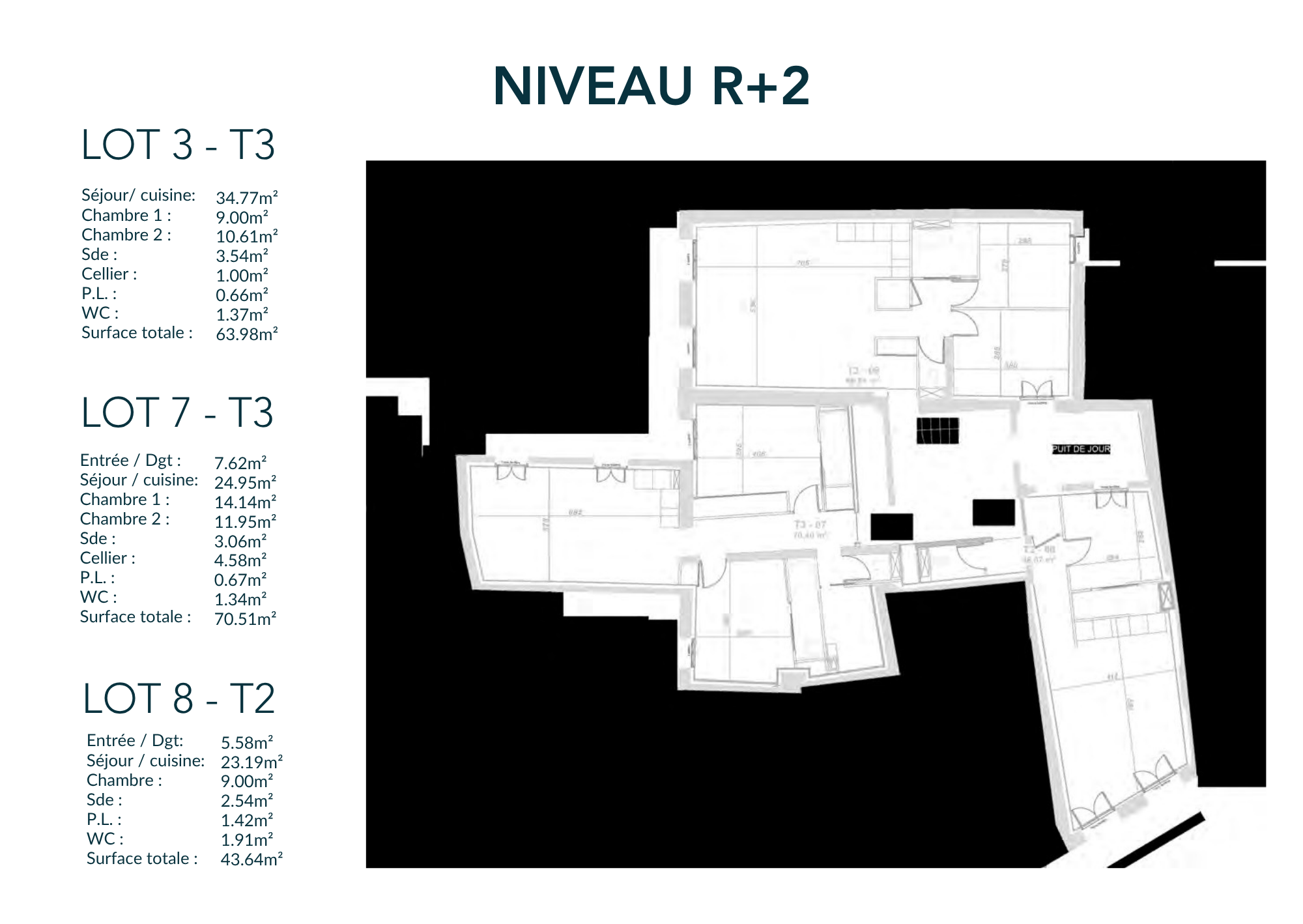 de 42,21 à 69,35 m²