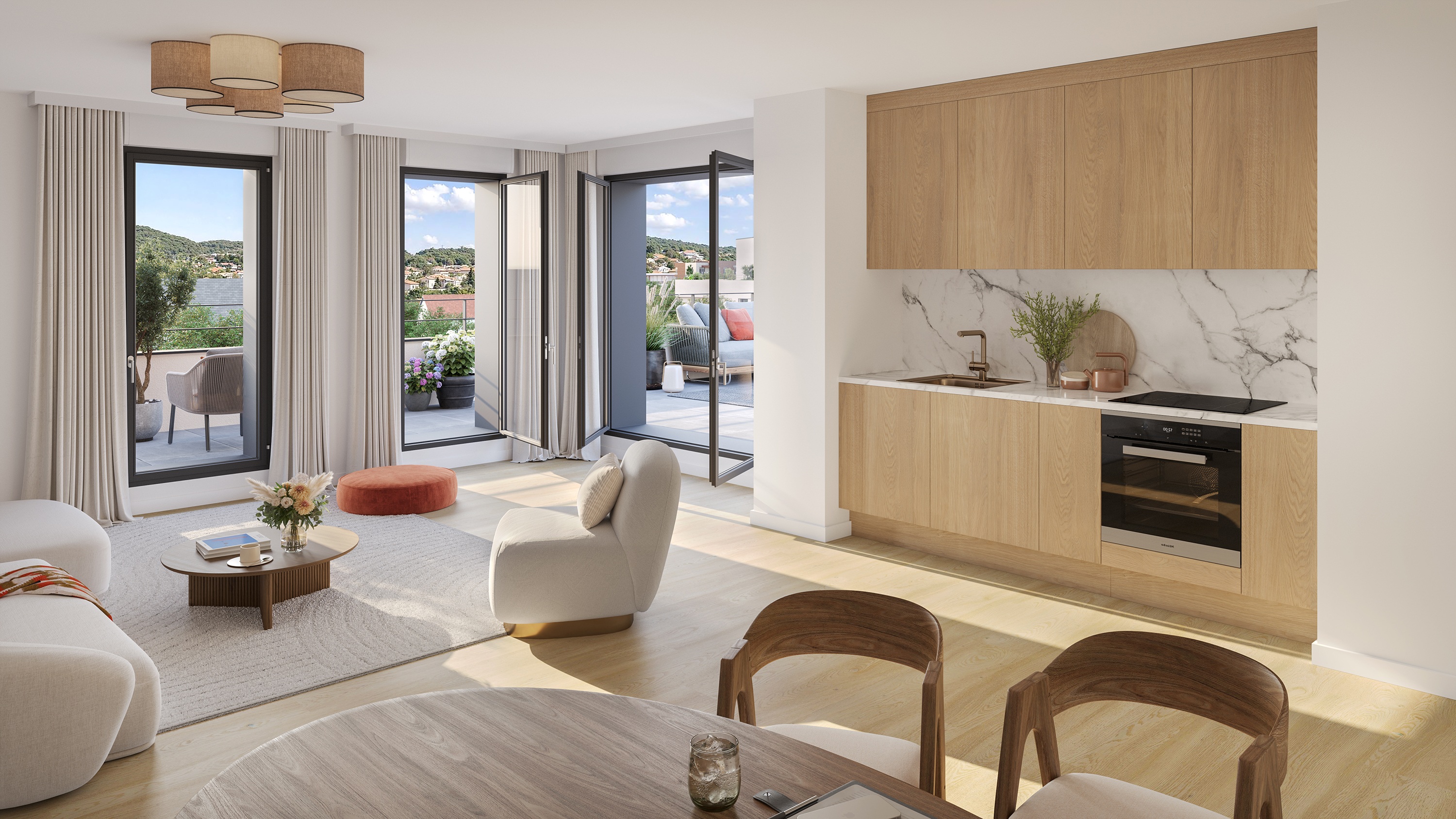 Discrète, harmonieuse, à taille humaine. Du studio au 5 pièces, chaque logement prolonge l’espace de vie vers l’extérieur :